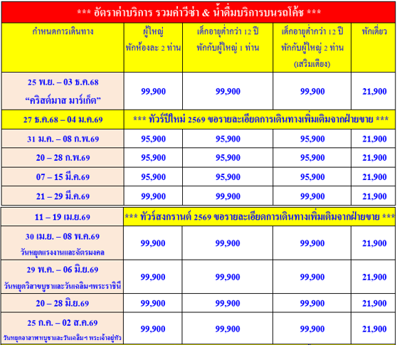 กำหนดวันเดินทาง : พฤศจิกายน 2568 - สิงหาคม 2569