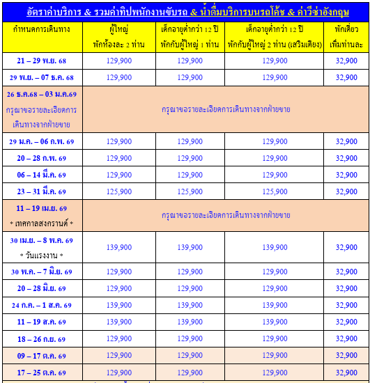 กำหนดวันเดินทาง : พฤศจิกายน 2568 - ตุลาคม 2569