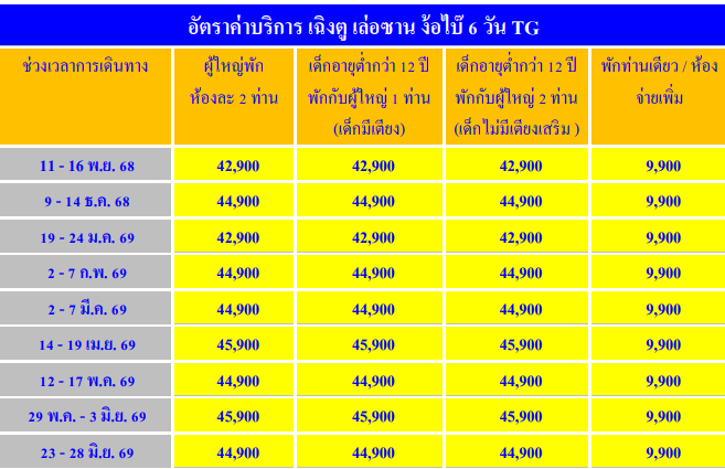 กำหนดวันเดินทาง : พฤศจิกายน 2568 - มิถุนายน 2569