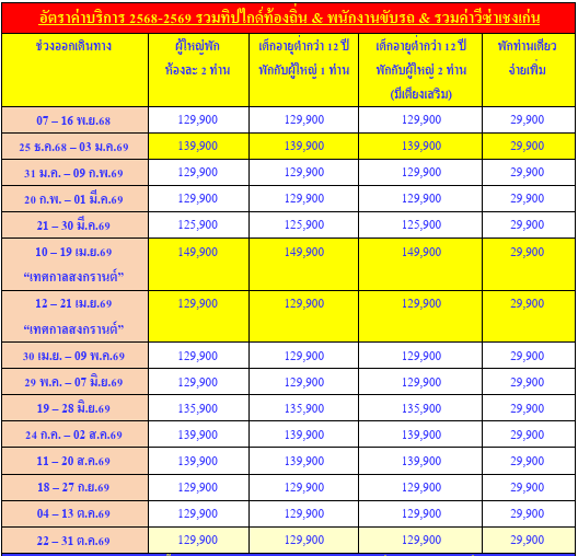 กำหนดวันเดินทาง : พฤศจิกายน 2568 - ตุลาคม 2569