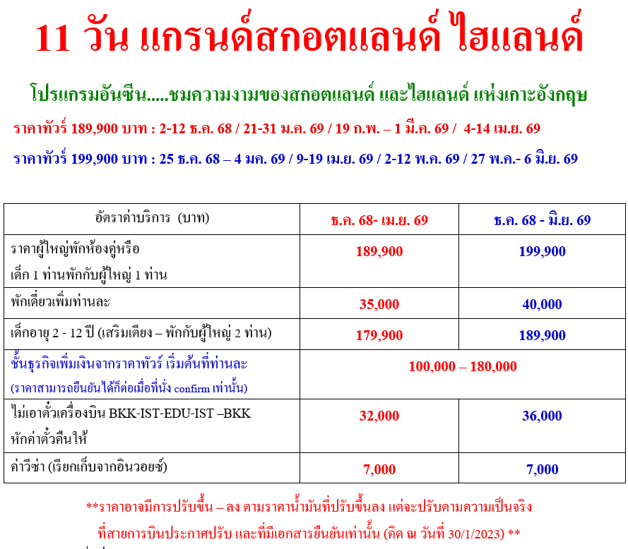 กำหนดวันเดินทาง :  ธันวาคม 2568 - พฤษภาคม 2569