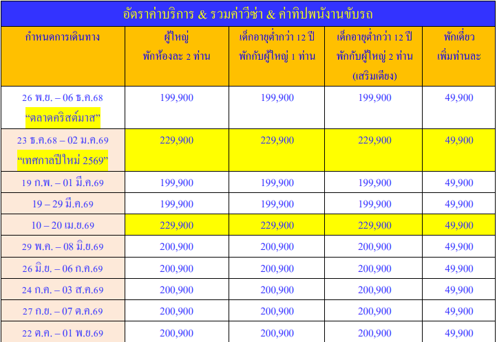 กำหนดวันเดินทาง : พฤศจิกายน 2568- พฤศจิกายน 2569
