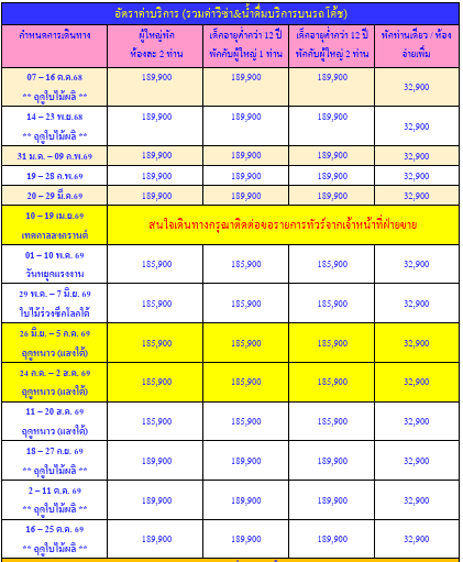 กำหนดวันเดินทาง :  ตุลาคม 2568 - ตุลาคม 2569