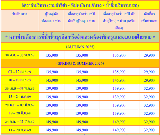 กำหนดวันเดินทาง : ตุลาคม 2568 - สิงหาคม 2569