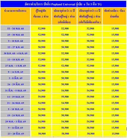 อัตราค่าบริการ ทัวร์จีน ปักกิ่ง กู๋เป่ย Popland Universal 6D 5N -TG