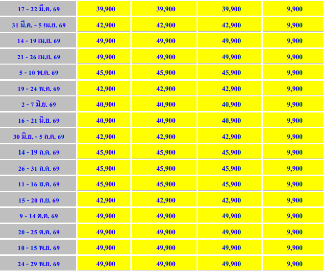 กำหนดวันเดินทาง : มีนาคม - พฤศจิกายน 2569