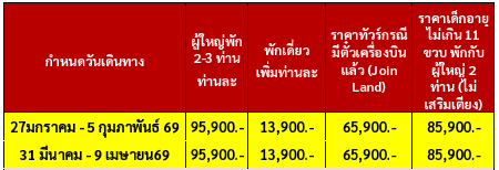 กำหนดวันเดินทาง : มกราคม 2569 - เมษายน 2569
