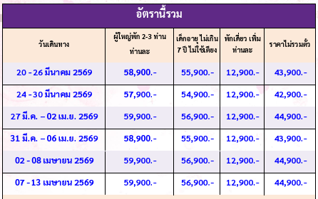 กำหนดวันเดินทาง : มีนาคม 2569 - เมษายน 2569