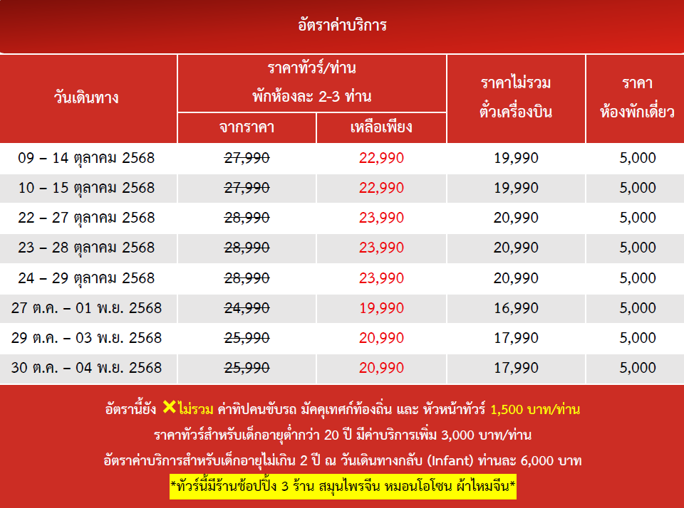 กำหนดวันเดินทาง :   ตุลาคม  2568