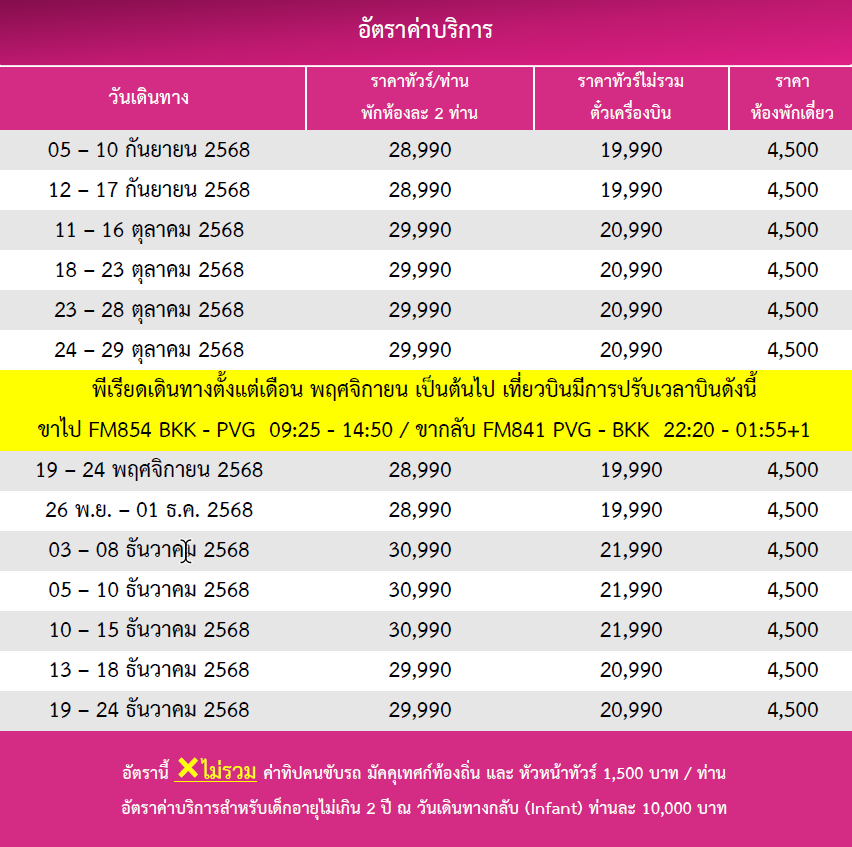 ***เดินทาง: กันยายน - ธันวาคม 2568 *** เมืองเซี่ยงไฮ้ – เมืองอู๋ซี – พระใหญ่หลิงซานต้าฝ๋อ – เมืองเซี่ยงไฮ้ – หาดไว่ทาน – ถนนนานจิง – นอร์ธบันด์ กรีนแลนด์ – MANNER COFFEE ฯลฯ