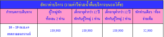กำหนดวันเดินทาง : 10 - 19 เมษายน 2569 (เทศกาลสงกรานต์)
