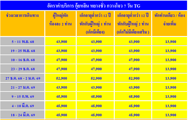 กำหนดวันเดินทาง :  พฤศจิกายน 2568 - มีนาคม 2569