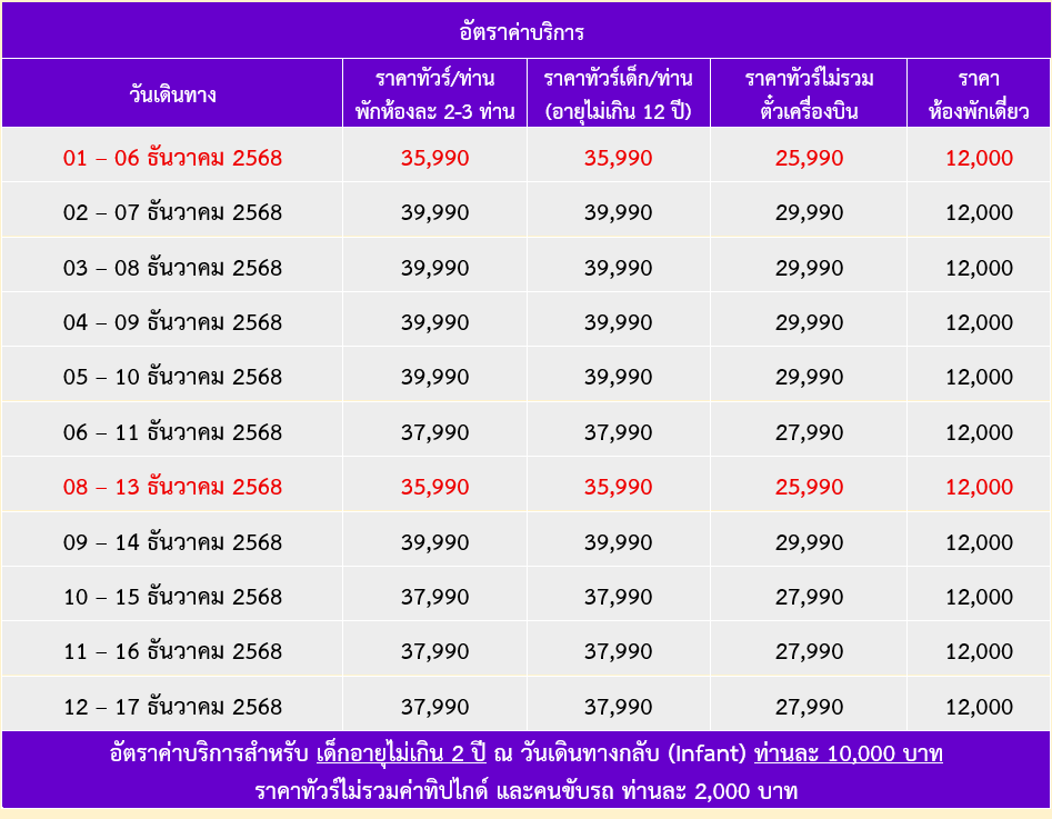 กำหนดวันเดินทาง :  ธันวคม  2568
