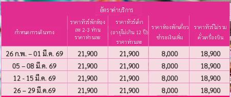 กำหนดวันเดินทาง :  มีนาคม 2569