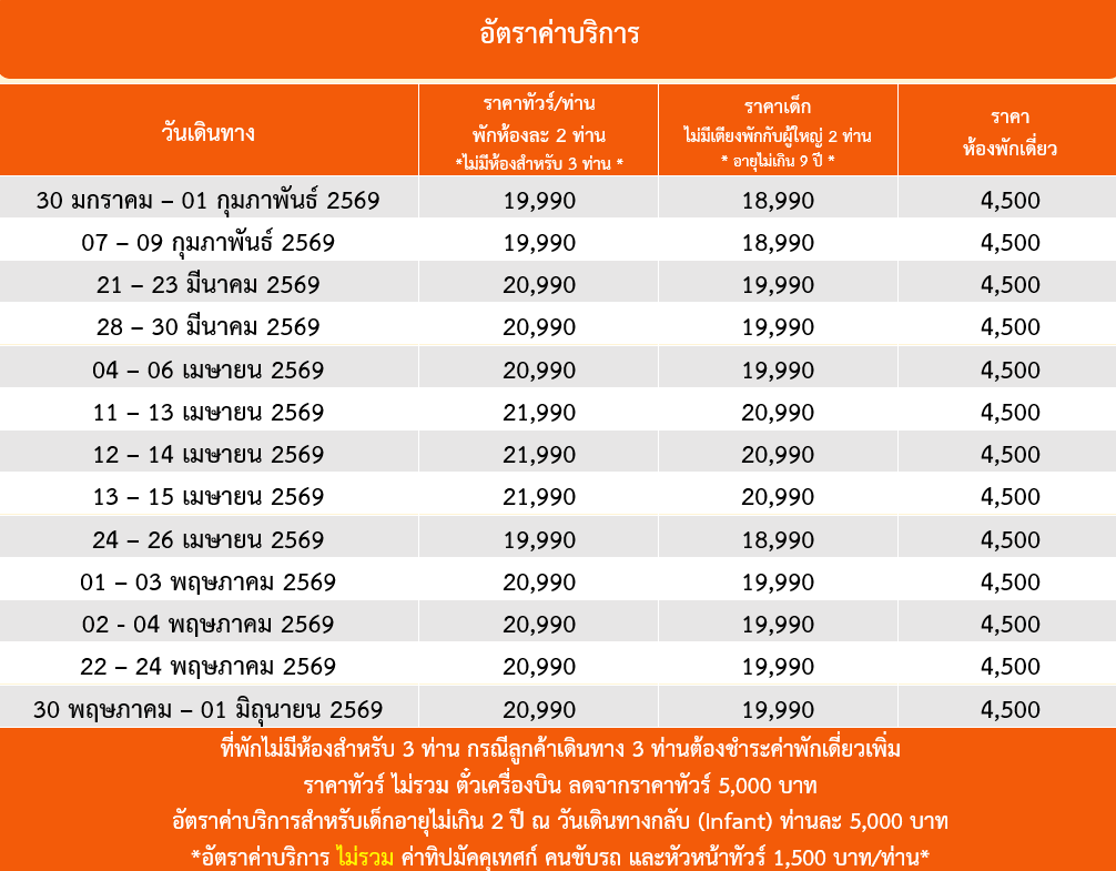 กำหนดวันเดินทาง :  กุมภาพันธ์ - พฤษภาคม 2569