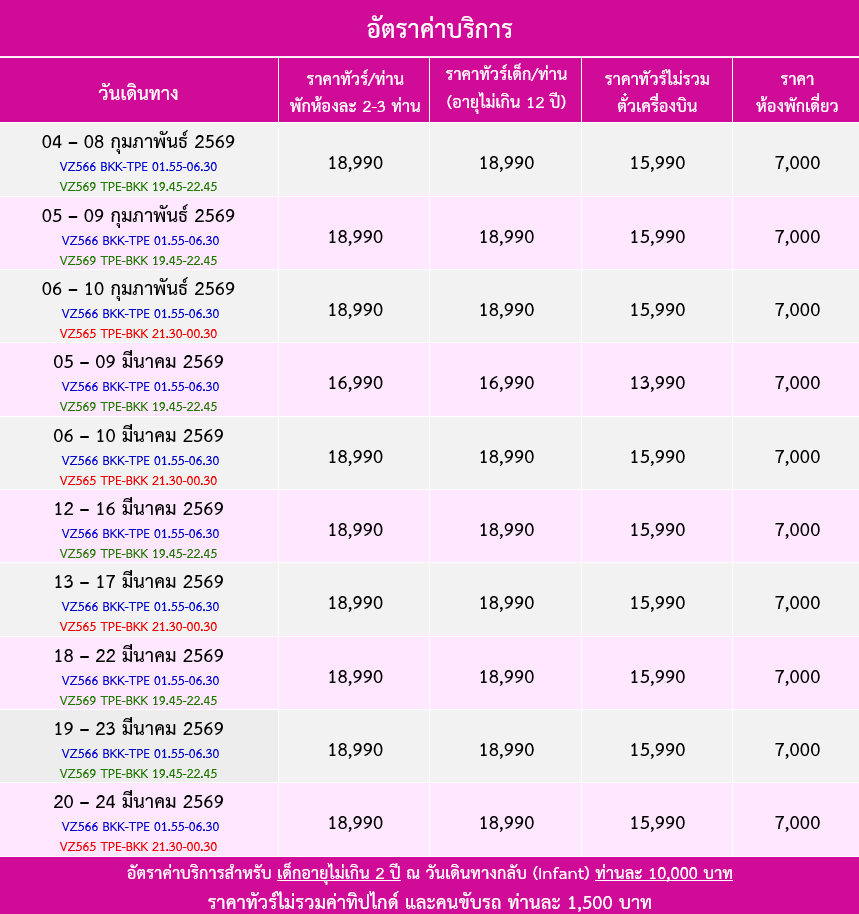 กำหนดวันเดินทาง : กุมภาพันธ์ - มีนาคม 2569