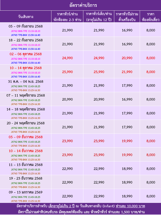 กำหนดวันเดินทาง :   กันยายน 2568 - มกราคม 2569