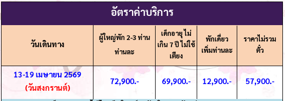 กำหนดวันเดินทาง : 13-19 เมษายน 2568