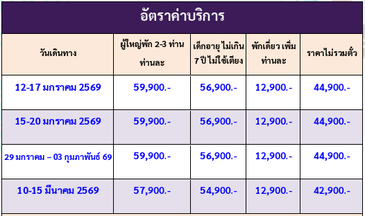 กำหนดวันเดินทาง : มกราคม 2569 - มีนาคม 2569