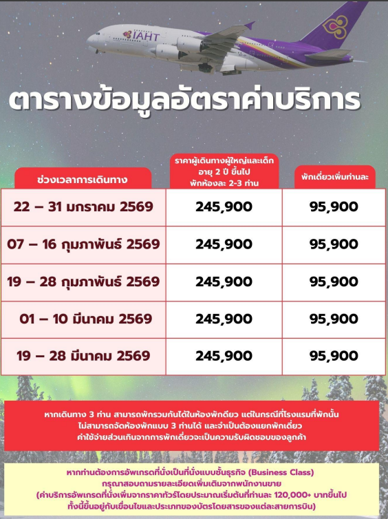 กำหนดวันเดินทาง : มกราคม - มีนาคม 2569