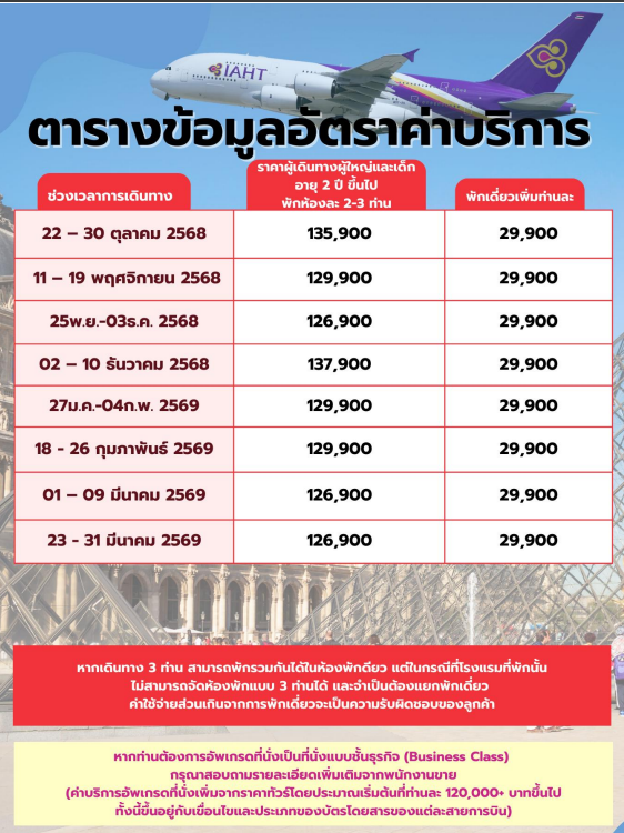 กำหนดวันเดินทาง : ตุลาคม 2568 - มีนาคม 2569