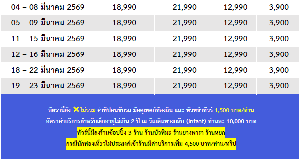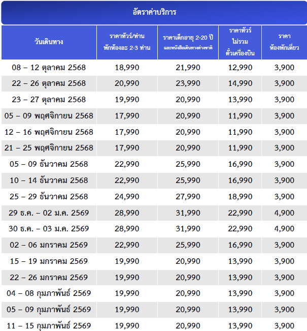 กำหนดวันเดินทาง : ตุลาคม 2568 - มีนาคม 2569