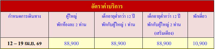 กำหนดวันเดินทาง :  12-19 เมษายน 2569