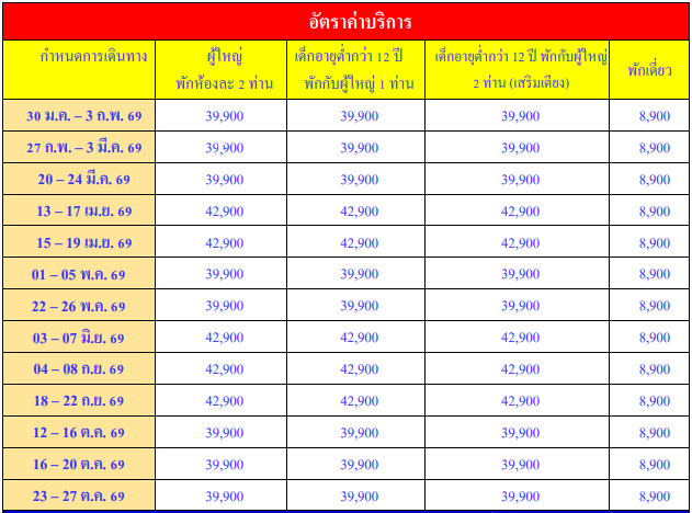 กำหนดวันเดินทาง : มกราคม 2569 - ตุลาคม 2569