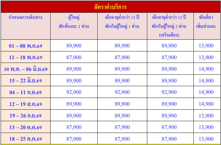 กำหนดวันเดินทาง : พฤษภาคม - ตุลาคม 2569