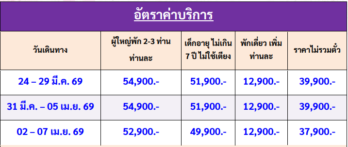 กำหนดวันเดินทาง :  มีนาคม - เมษายน 2569