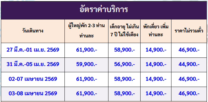 กำหนดวันเดินทาง : มีนาคม - เมษายน 2569