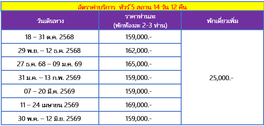 กำหนดวันเดินทาง : ตุลาคม 2568 - พฤษภาคม 2569