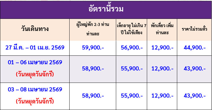 กำหนดวันเดินทาง : มีนาคม - เมษายน 2569