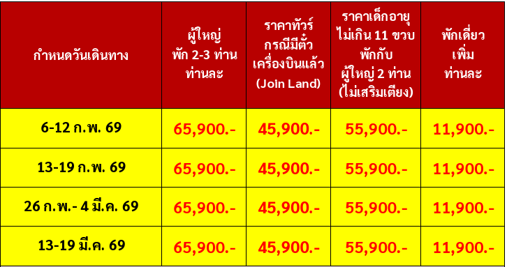 กำหนดวันเดินทาง : กุมภาพันธ์ - มีนาคม 2569
