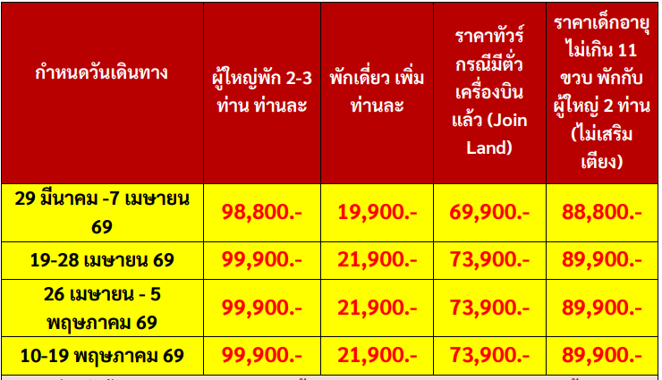 กำหนดวันเดินทาง : มีนาคม - พฤษภาคม 2569