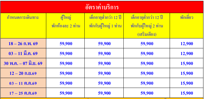 กำหนดวันเดินทาง : กุมภาพันธ์ - ตุลาคม 2569