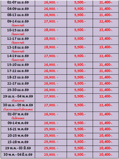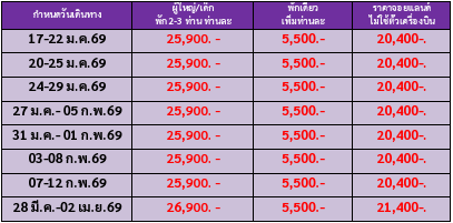 กำหนดวันเดินทาง : มกราคม - มิถุนายน 2569