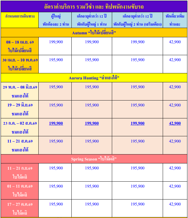 กำหนดวันเดินทาง :  เมษายน - ตุลาคม 2569
