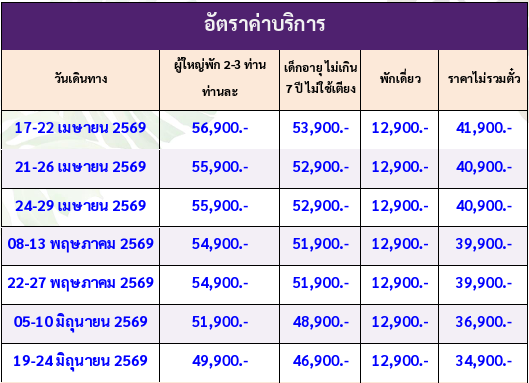 กำหนดวันเดินทาง :   เมษายน - มิถุนายน 2569