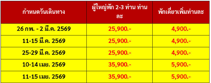 กำหนดวันเดินทาง : กุมภาพันธ์ - เมษายน 2569