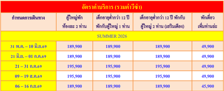 กำหนดวันเดินทาง : พฤษภาคม - กันยายน 2569