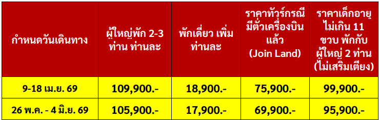 กำหนดวันเดินทาง : เมษายน - มิถุนายน 2569