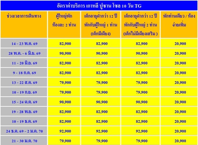 อัตราค่าบริการ ทัวร์เกาหลี - โซล - ปูซาน - สวนสนุก EVERLAND 10 วัน-TG