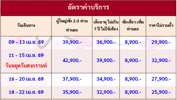 กำหนดวันเดินทาง : เมษายน 2569(สงกรานต์)