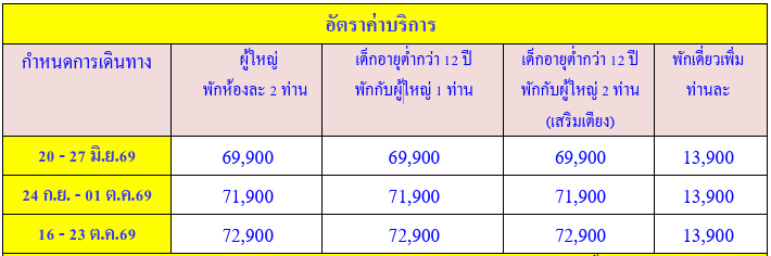 กำหนดวันเดินทาง :  มิถุนายน - ตุลาคม 2569