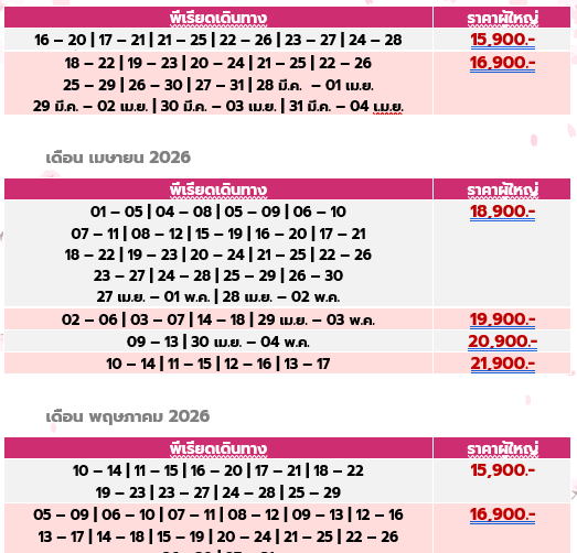 กำหนดวันเดินทาง : มีนาคม - พฤษภาคม 2569