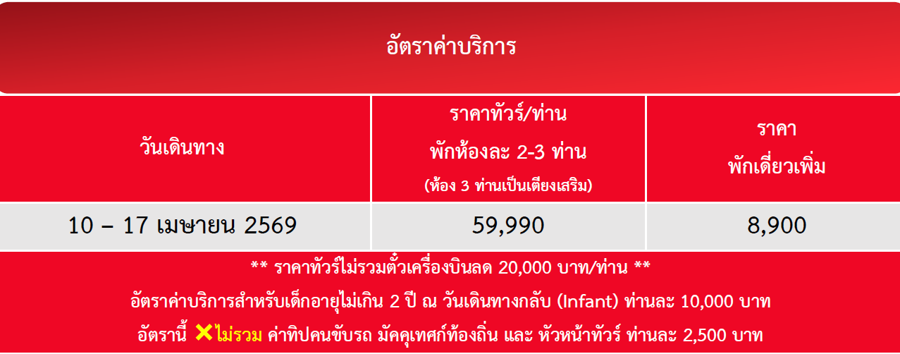 กำหนดวันเดินทาง : 10 - 17 เมษายน 2569