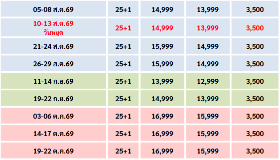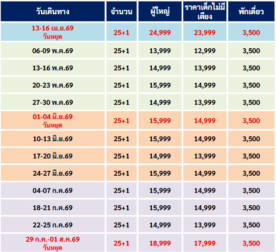 กำหนดวันเดินทาง : เมษายน - ตุลาคม 2569
