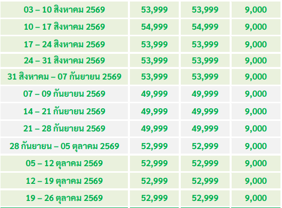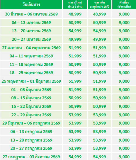 กำหนดวันเดินทาง : เมษายน - ตุลาคม 2569