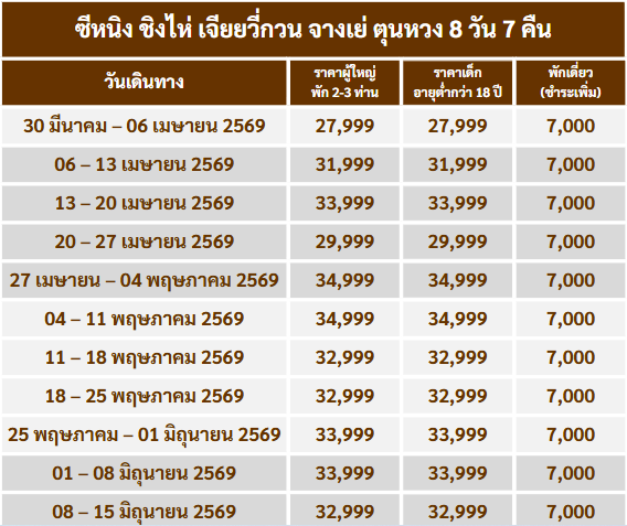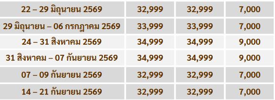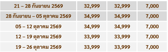 กำหนดวันเดินทาง : มีนาคม - ตุลาคม 2569